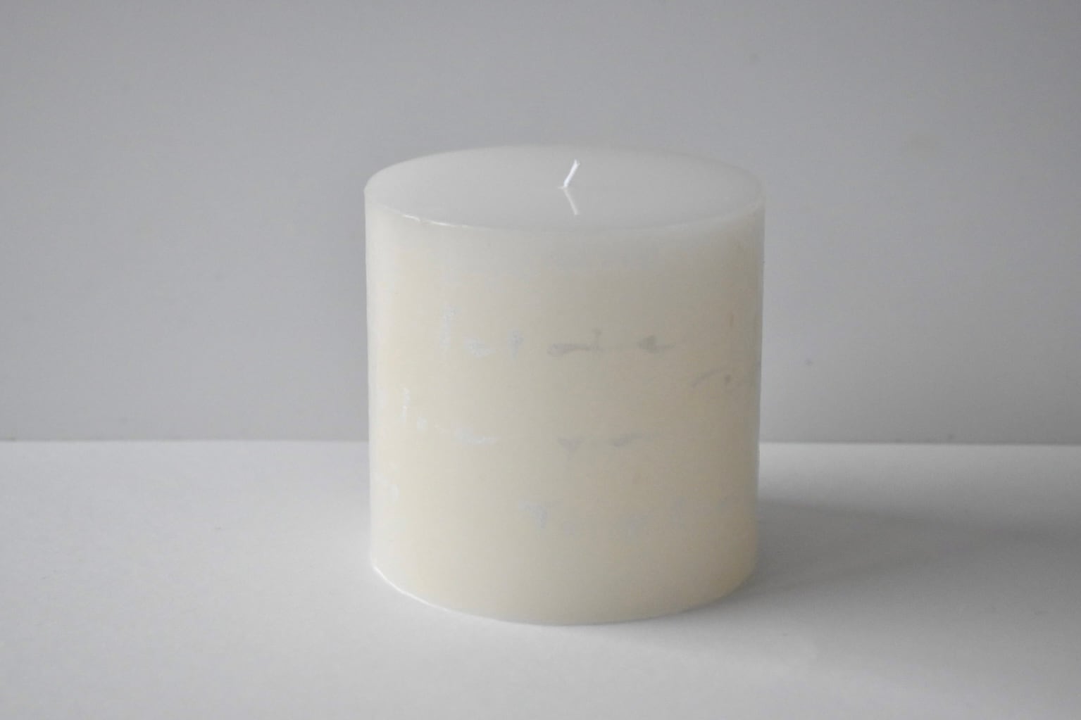 未晒しの手漉き和紙(黒谷和紙を使用)に銀墨汁で文字を書き、蝋燭の表面に貼り付けています。